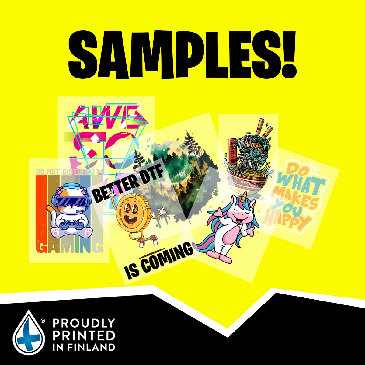 The production of ready-to-use DTF-transfer images is our core activity. Our production and pick-up points are located in Tampere, Turku and Vantaa!