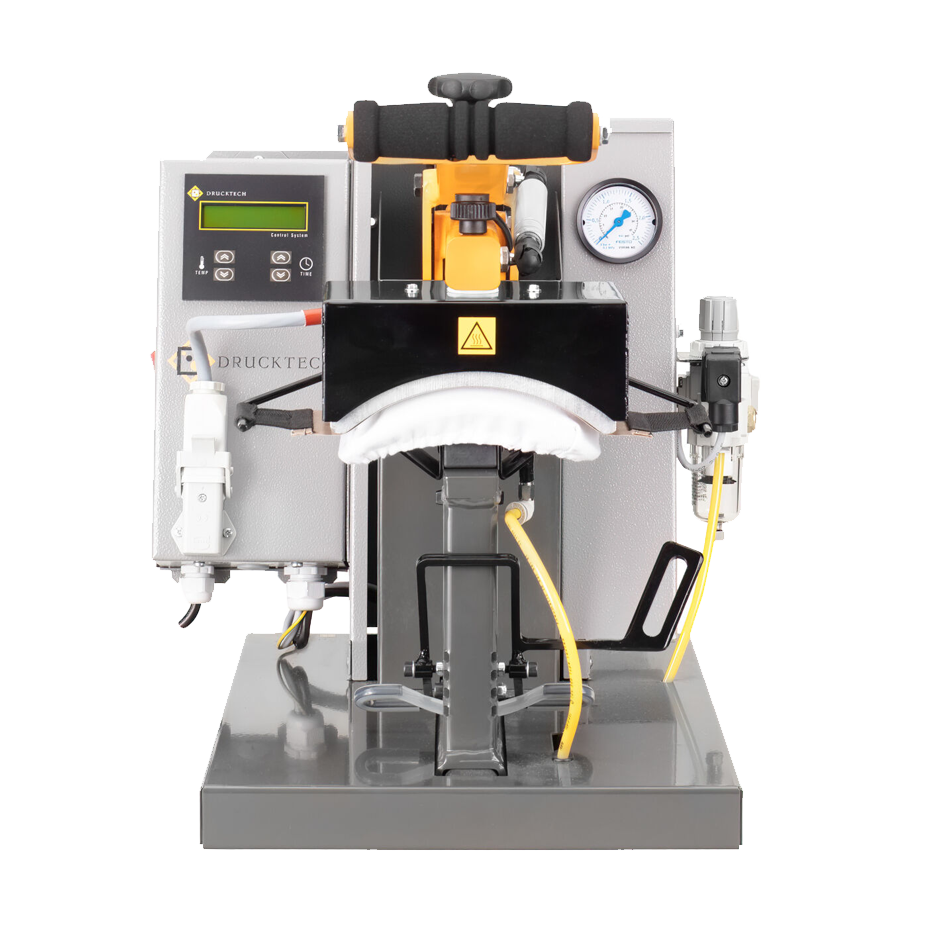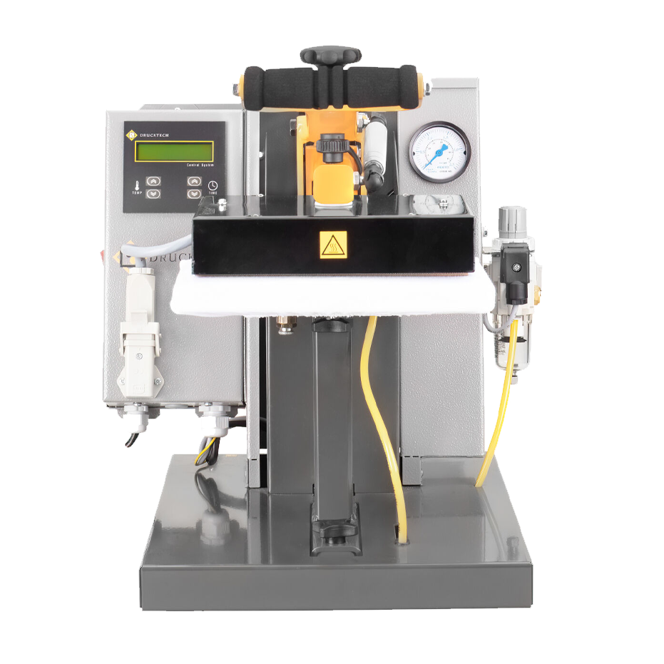 Automaattisesti avautuva manuaalinen yhdistelmälämpöprässi ilmatyynylevyillä.