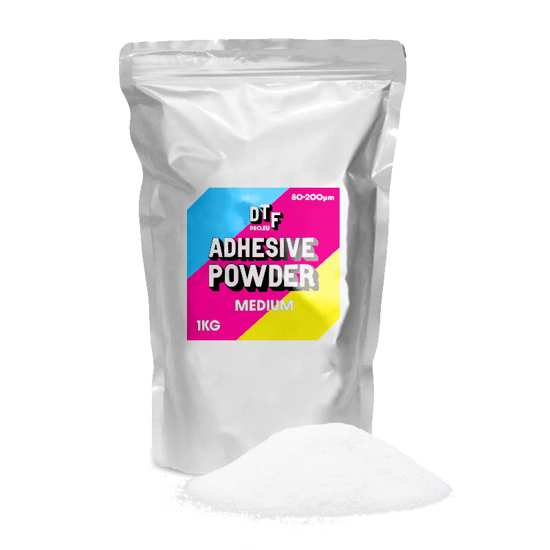 Medium liimajauhe soveltuu monipuolisesti lähes kaikkiin DTF-tulosteisiin.