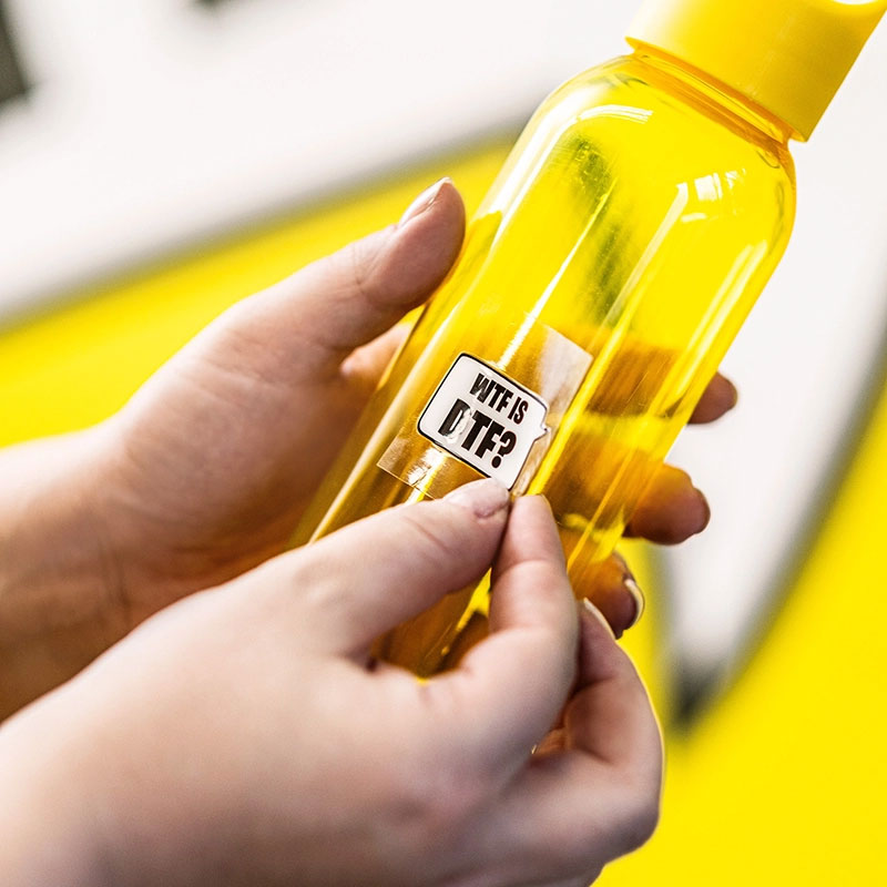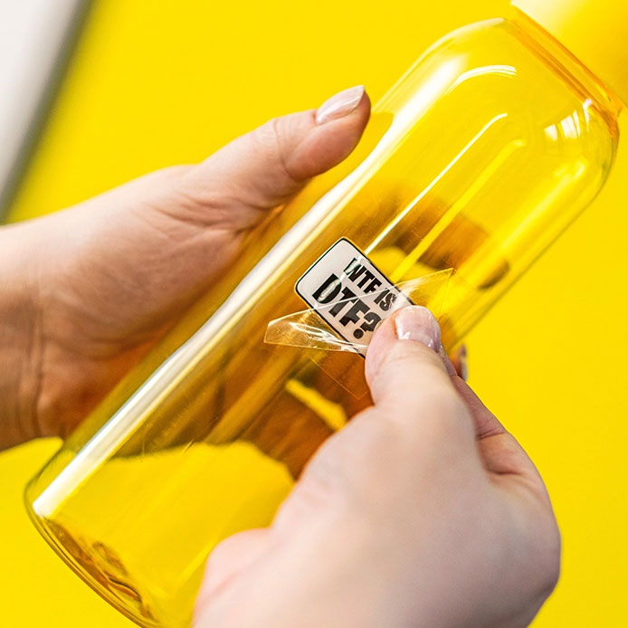 Lähetä aineisto sellaisena, kuin haluat sen tulostettavan. Tarkista, että kuva on oikean värinen eikä tiedostossa ole ylimääräisiä elementtejä, kuten taustavärejä, joita et halua lopulliseen tarraan. Muuta tiedosto haluttuun kokoon ja konvertoi fontit mahdollisuuksien mukaan valmiiksi.